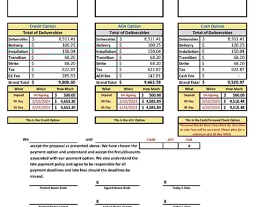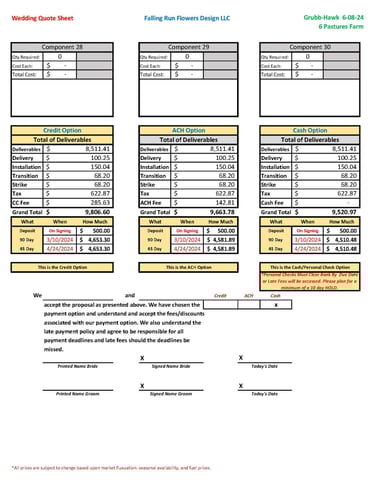 The Design - This is where we take the information that we have gathered and use it to Design all of the items needed for your event. This includes but is not limited to: Sourcing Materials Needed, Flowers, Greens, Ribbon, Material, Hardware, etc. and determining the Quantity and Structure of everything along with contingency planning for Weather, Transportation, Labor, Logistics, etc. *No actual designs or plans are released to the client until our services have been secured with a signed contract & deposit. These are our intellectual property.