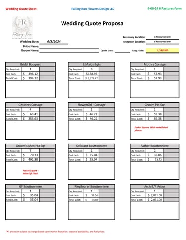 The Quote - All of the previously mentioned items need to be costed out and priced to determine a cost for the client. This involves reaching out to our farms and purveyors to determine pricing. Then it is conveyed to the client for approval and contracts and approval signed and deposits collected. This must be properly calculated so that we ensure profitability for our business and that all of the clients needs are met. There has been no end product generated yet and there are already hours invested and expenses generated.