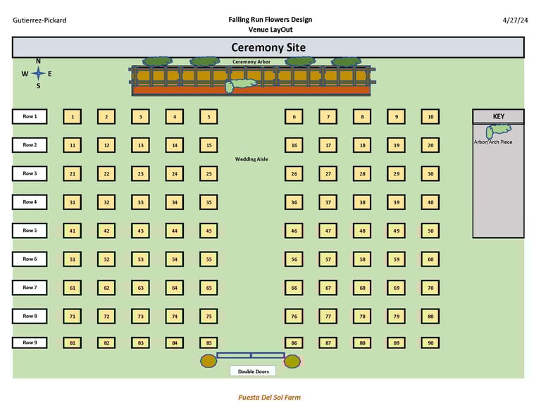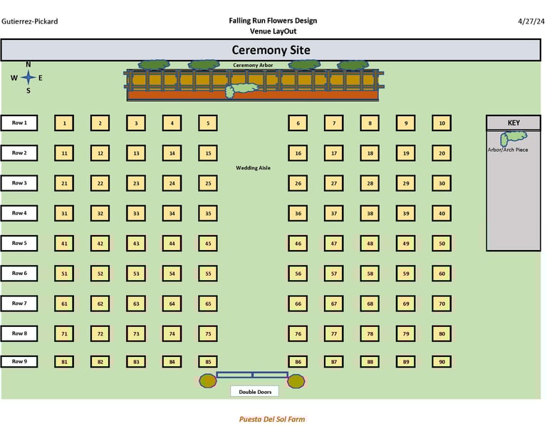 The Design - This is where we take the information that we have gathered and use it to Design all of the items needed for your event. This includes but is not limited to: Sourcing Materials Needed, Flowers, Greens, Ribbon, Material, Hardware, etc. and determining the Quantity and Structure of everything along with contingency planning for Weather, Transportation, Labor, Logistics, etc. *No actual designs or plans are released to the client until our services have been secured with a signed contract & deposit. These are our property.